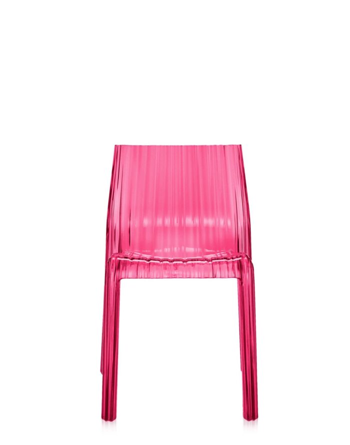 Born from an idea of an industrial sculpture transformed into a charming ergonomic shape Frilly chair in transparent polycarbonate, designed by award-winning Spanish-born designer Patricia Urquiola. The wavy effect covering the entire structure gives this chair a light and soft look, like pleated fabric, optical effect sensual, playful and feminine. The wide range of colors is reminiscent of natural elements, giving a further touch of gracefulness.